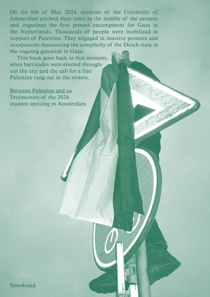 Between Palestine and us documents and recounts the student uprising in Amsterdam in May 2024. Denouncing the complicity of their university and government in the destruction of Gaza, student protesters and other activists rose up across the city. They engaged in massive protests, organized encampments and occupations, and built barricades wherever they went.