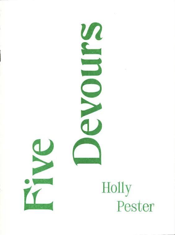 ‘Five Devours’ is a short essay in five parts about need and food as a part of speech, about speech’s relationship to nourishment and hunger; the currency between eating and speaking, expending and consuming.
