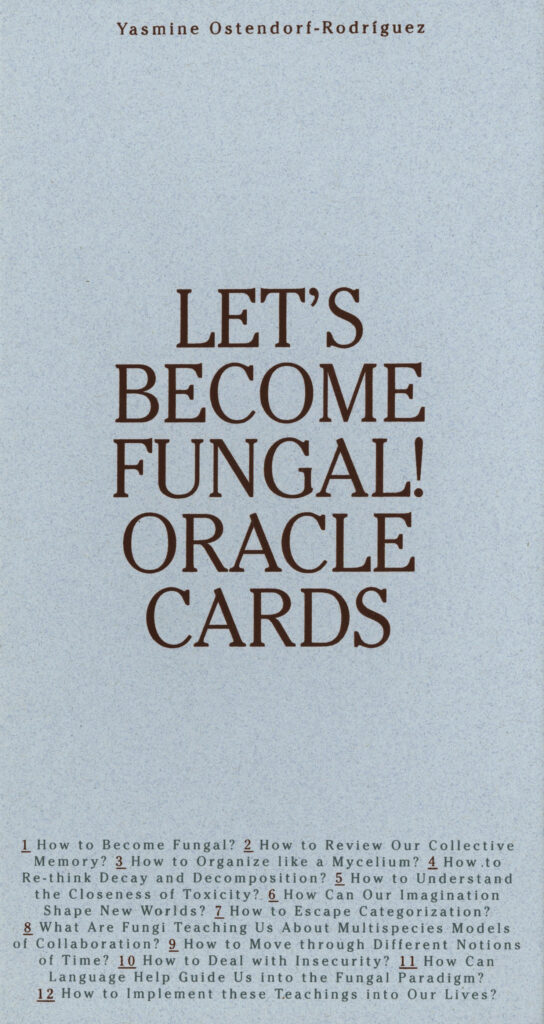 The starting point for this deck – that come in a silk-screen box – is the book Let’s Become Fungal!: after a year of conducting workshops based on it all the learnings and further thoughts were broughts togehter in these cards. The knowledge flows from encounters from fungi-enthusaists in Asia, Latin America, Europe, and the Caribbean.