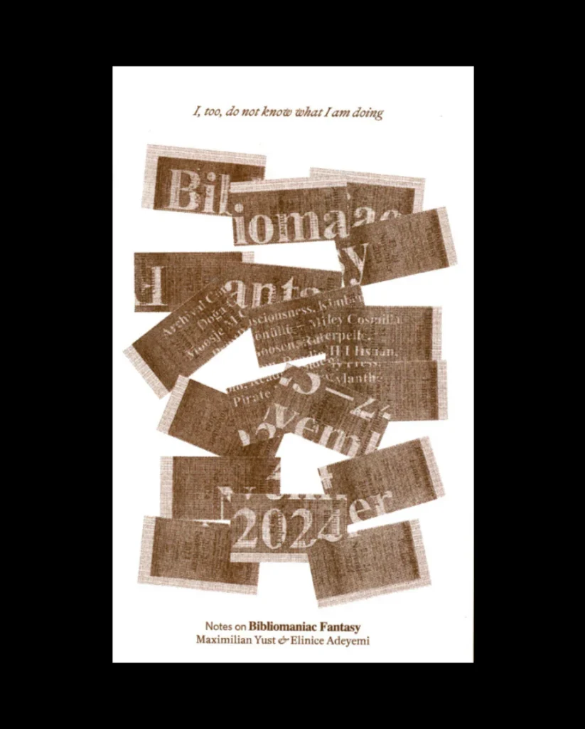 The first part of this publication compiles notes from the three-day event Bibliomaniac Fantasy, recorded by Limestone Books colleagues Maximilian Yust and Elinice Adeyemi, together with interviews conducted with participants after the event. The second part introduces Firebrat Library and features interviews conducted by Adeyemi with various members of the Limestone Books community library.