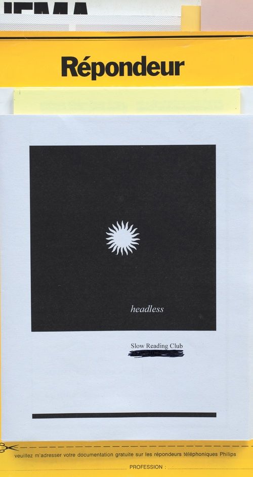 Slow Reading Club (SRC) is a semi-fictional reading group initiated and run by Bryana Fritz and Henry Andersen. Since 2016, in numerous contexts, they have rehearsed alternatives to the kinds of reading they were taught in school, actively supressing semantic content through strobe lights, strange postures, sociality, and toxins. Operating at the contact zones between reader and text, text and text, reader and reader, they attempt to build a practice from within the unstable space of reading itself. ‘Répondeur’ is an extensive account of SRC’s practice in collective reading sessions, exhibitions, and textual bootlegging. Imagined as a scroll, with a rhyme structure and typesetting by Will Holder, the book brings together facsimiles of SRC readers, a wide-ranging interview by Alicja Melzacka, new texts by Joyelle McSweeney and Bill Dietz, and visual work and translations by SRC.