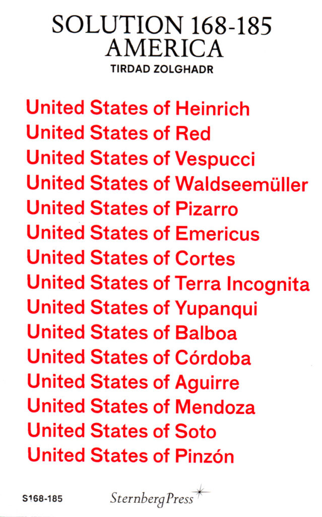 ‘Solution 168–185: America’ is the fourth book in the Solution Series. Opting for the United States of America, “still the most proficiently colonial place I know,” Zolghadr provides a compilation of highly entertaining “solutions,” where the objective is not the education of America so much as the pleasure of a text that purports to be just that.